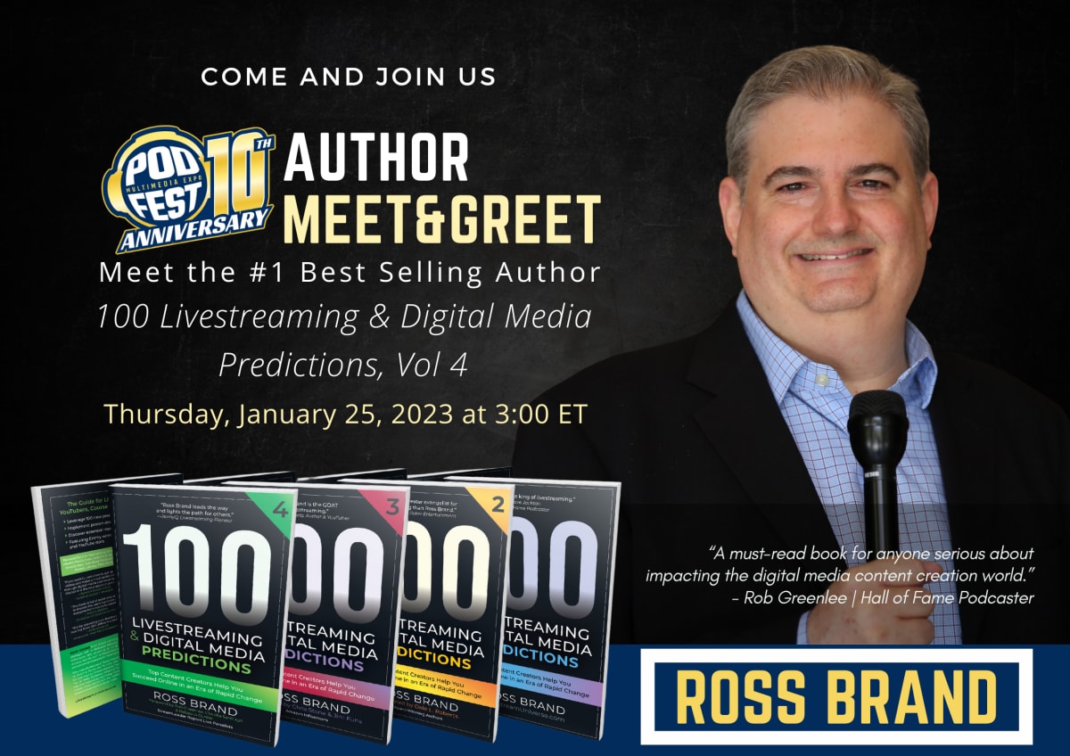 Meet me at Podfest in Orlando, Florida on Thursday, January 25, 2024. Signing copies of 100 Livestreaming & Digital Media Predictions, Volume 4.