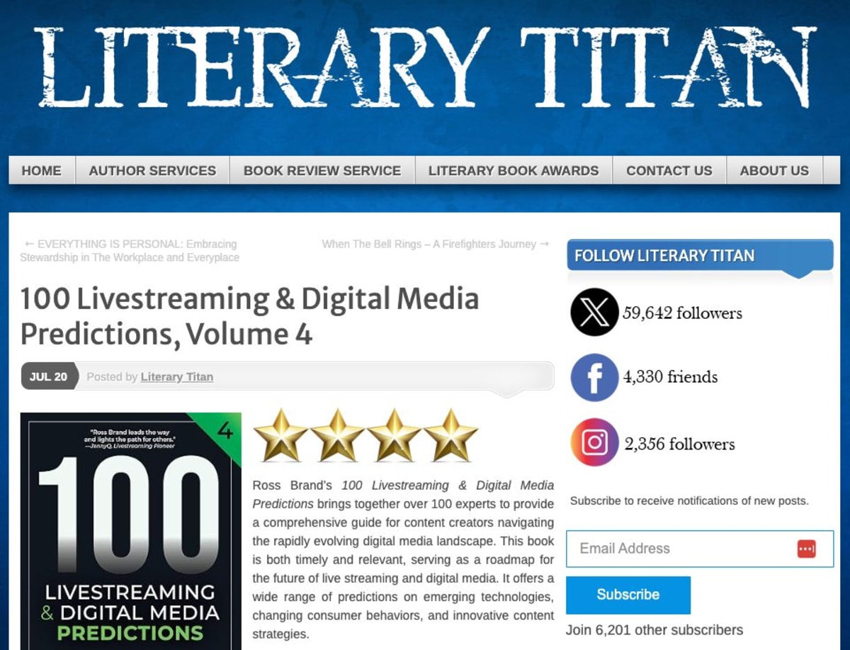 Literary Titan is featuring its review of 100 Livestreaming and Digital Media Predictions, Volume 4 on its website.